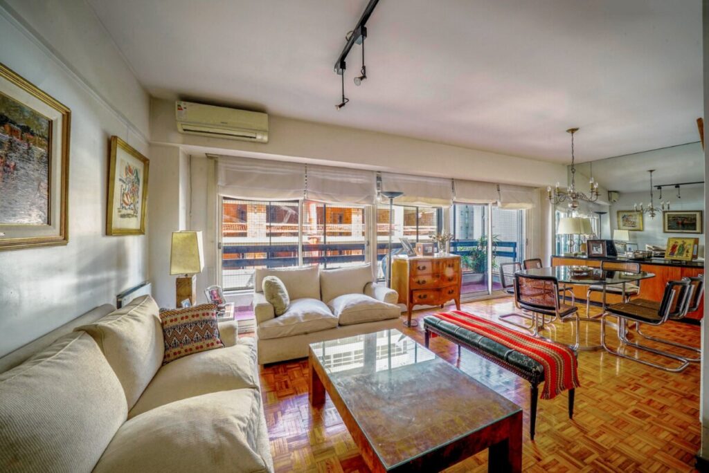 Excelente piso en edificio de categoría. Muy luminoso con gran vista abierta. Amplio living y comedor a balcón. Escritorio con chimenea. 3 dormitorios (1 en suite con vestidor y baño). Pisos de parquet. Vigilancia. Cochera fija.