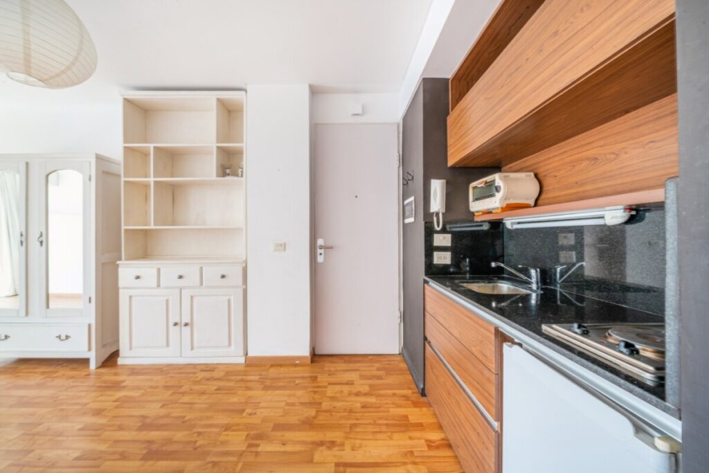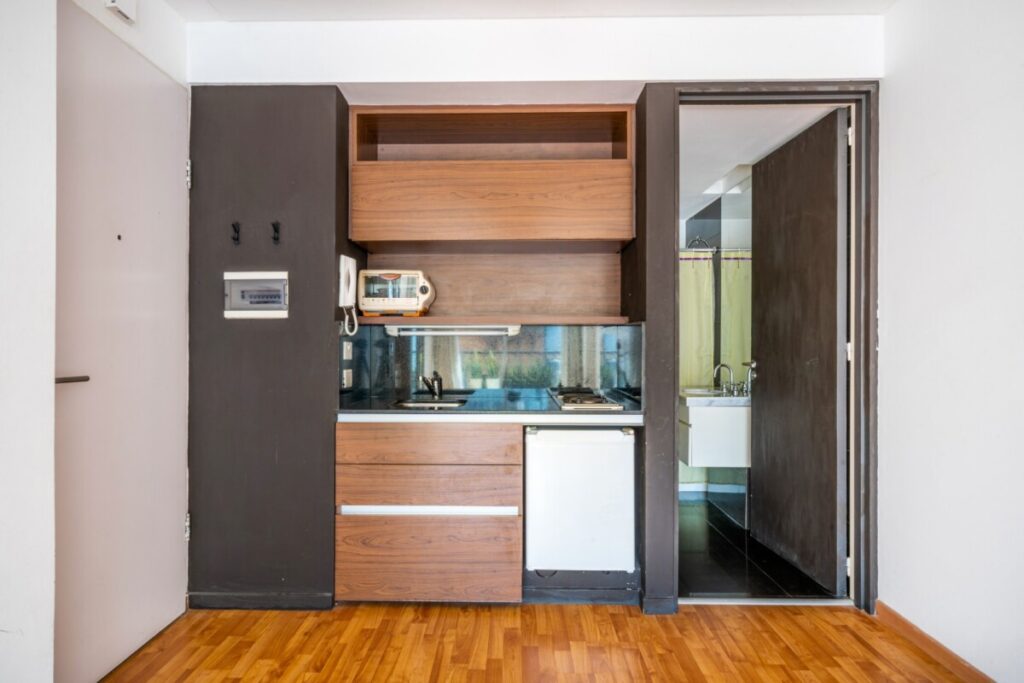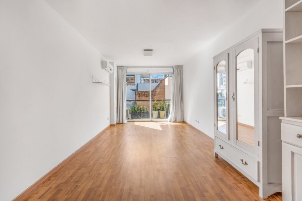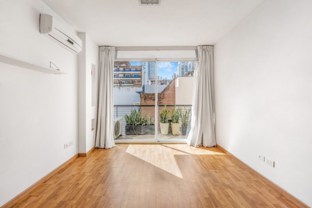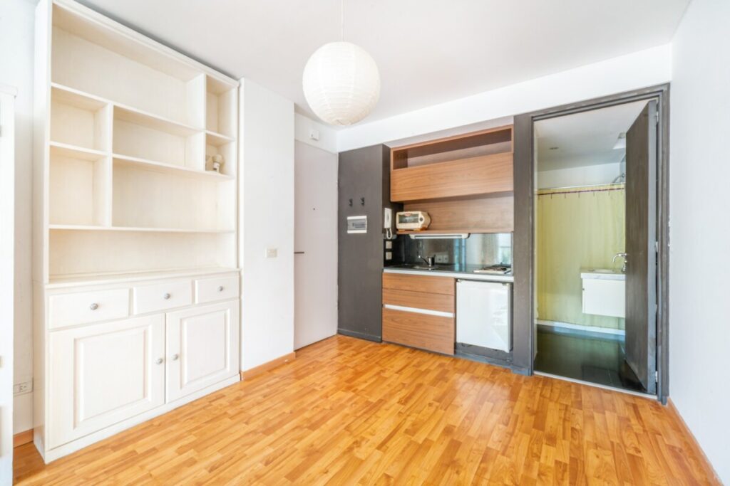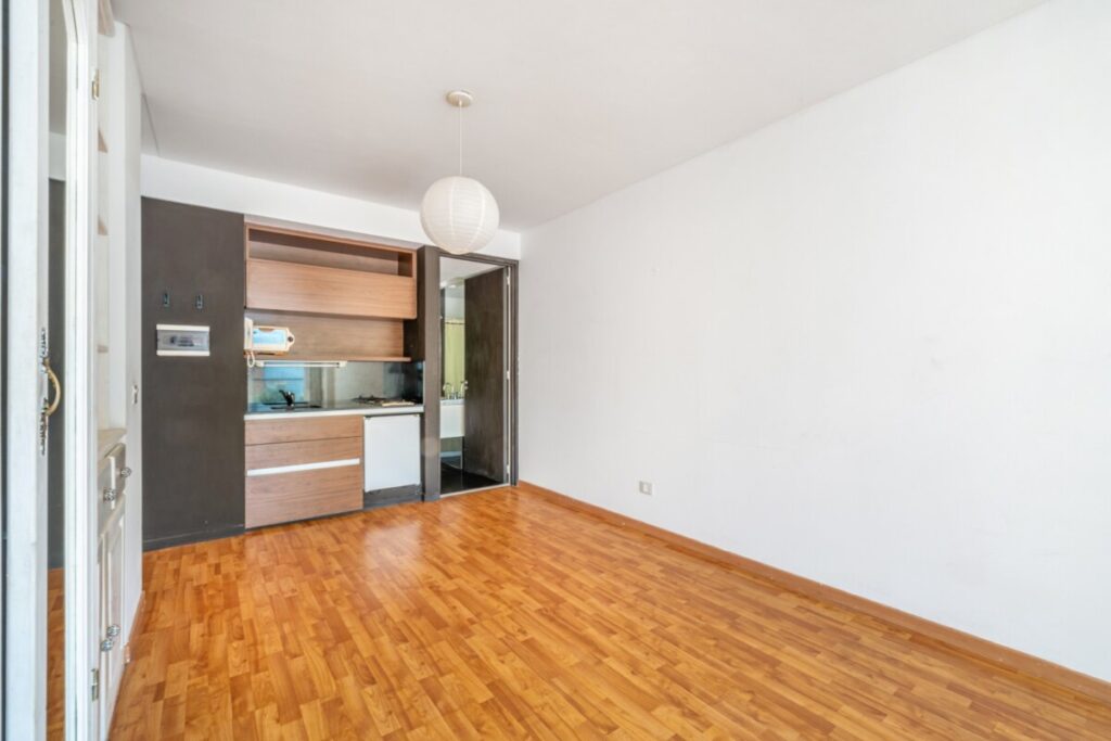 Lindísimo ambiente al contrafrente super luminoso y muy silencioso. Excelente ubicación en Plaza Las Heras. Balcón. Cocina integrada y baño completo. Todo eléctrico. Puerta blindada. Quedan la la biblioteca, las cortinas y las luces. Amenities: laundry, deck y parrilla.