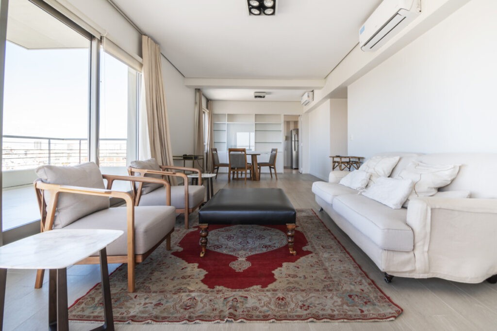 Excelente departamento en el Quartier Ocampo. Piso alto muy luminoso. Todo vista al río. Palier privado. Hall. Living comedor a balcón. Toilette. 2 dormitorios en suite con vista al río (principal con vestidor) y 2 baños completos. Cocina y comedor diario con vista increíble. Baulera. 2 cocheras fijas. Vigilancia 24 horas. Amenities: pileta en último piso, SUM, gym, sauna, microondas, ducha escocesa, y cancha de tenis.