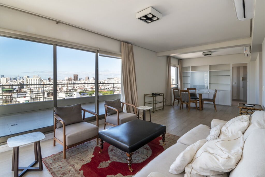 Se ingresa al área social de la propiedad a través de un gran hall de mármol que conduce a cuatro fabulosos ambientes con salida a gran terraza que abarca los 35 mts. del frente del edificio y ofrece magníficas vistas.